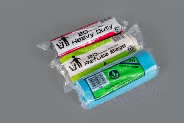 General application refuse bags packed flat or supplied Bag on Roll (BOR). Available in various colours and film thickness. Printed outers can be done but it subject to minimum order quantities.